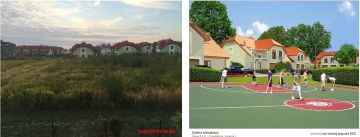 zrzut ze strony dewelopera (wizualizacja) zachęcającego do zamieszkania w naszej wsi. Deweloper oszukał nie tylko fanów koszykówki.